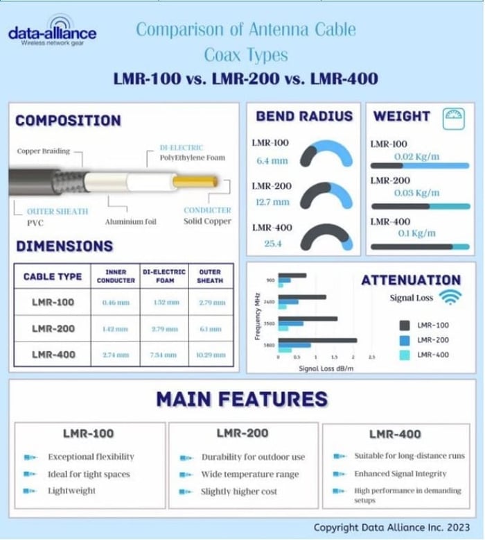 Comparison of LMR-100, LMR-200 and LMR-400 Coax for Antenna Cables