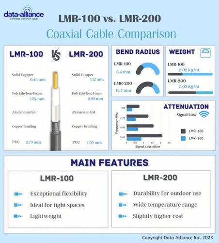 LMR-200 Cable Specifications Compared to LMR-100