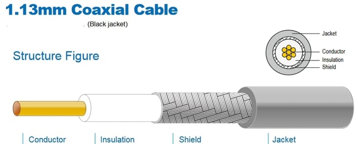 1.13mm coaxial cable is the most commonly-used coax for U.FL cables - especially short cables. 1.13 is the only coax that can be used with MHF4 cables.