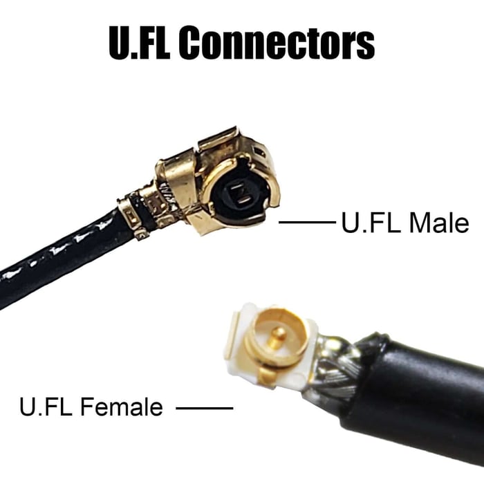 - The cable connector is typically referred to as U.FL plug (male)