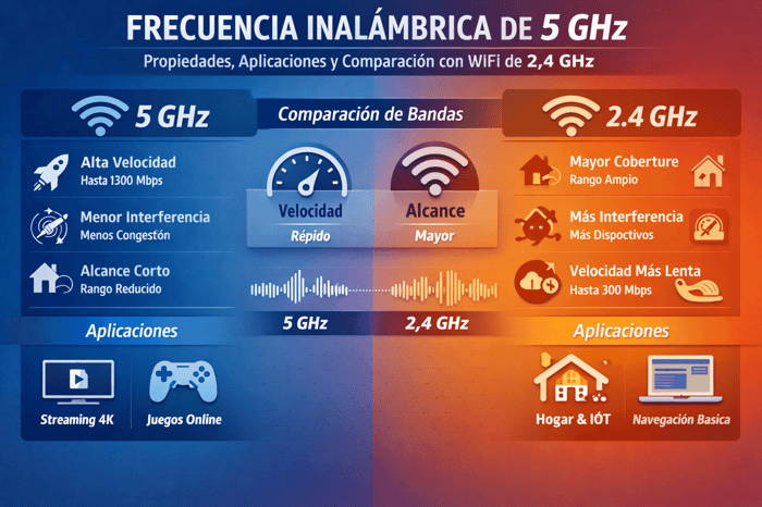 Frecuencia inalámbrica de 5 GHz: propiedades, aplicaciones y comparación con WiFi de 2,4 GHz